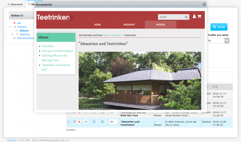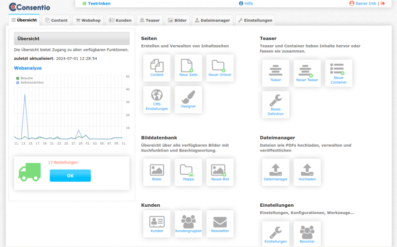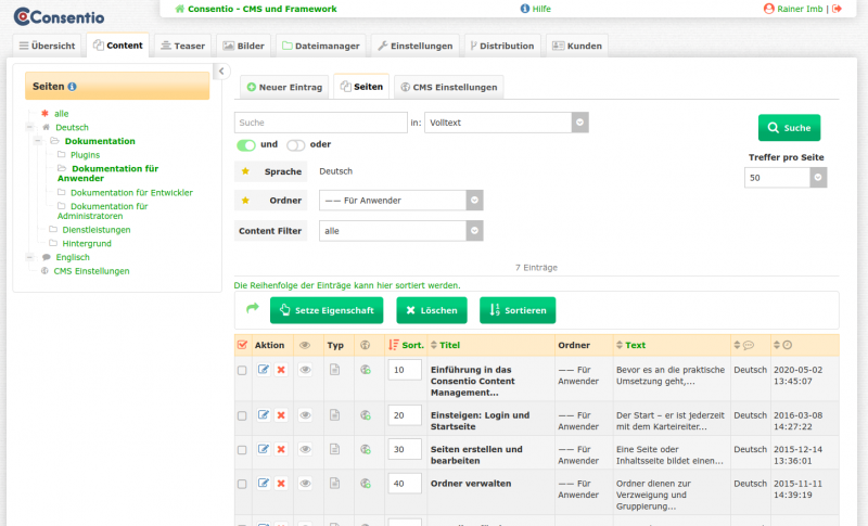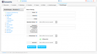Sie finden hier einige Screenshots des Consentio Content Managements. Sollten Sie Consentio genauer unter die Lupe nehmen wollen, richten wir Ihnen gerne unverbindlich und kostenlos einen Test-Account ein.